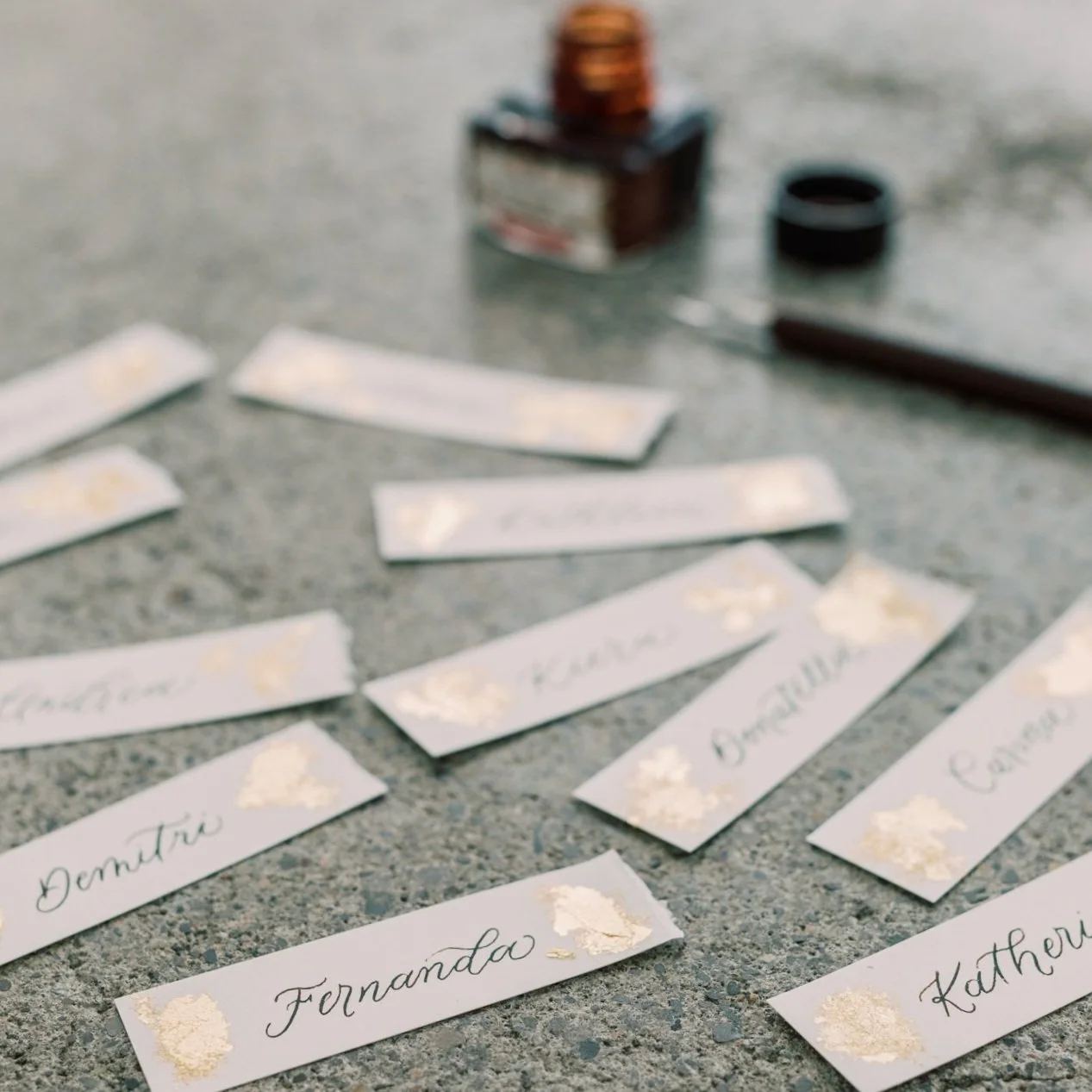Witness the captivating art of calligraphy come to life before your eyes at your upcoming event. We offer the perfect touch of elegance and charm that will leave a lasting impression on your guests, as they watch their personalization come to life.